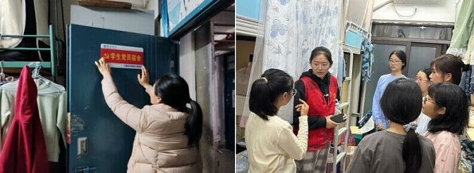 学校瞄准学生党组织建设关键节点,把学生宿舍作为党建思政引领的新阵地,充分发挥学生党员的先锋模范作用,设立“党员责任区”“党员先锋岗”,挂牌“党员模范先锋寝室”,促进学生党员在宿舍服务管理中发挥引领作用,营造“一名党员就是一面旗帜”的氛围,构建政治素质过硬、内务安全卫生、学习风气浓厚、氛围和谐上进、示范作用突出的党员示范宿舍。拓宽党建思政教育阵地,在宿舍建立党员活动室,践行一线原则,党员领导干部下沉宿舍,确定党员领导干部深入宿舍的具体任务。发挥学生党支部的战斗堡垒作用,创新党支部作用发挥途径,开展结对帮扶活动,发挥学生党员与党组织之间的桥梁和纽带作用,通过学生党支部联系宿舍,搭建朋辈帮扶的新载体,推动学生党员深入学生宿舍,了解学生的思想动态和真实诉求,解决学生的实际问题。