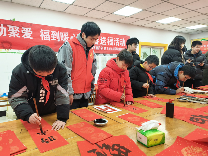 为深入学习宣传贯彻习近平文化思想,弘扬中华优秀传统文化,健全党、团、队一体化育人工作体系,进一步深化校地合作与社区共建。1月24日,蚌埠学院团委、团蚌埠市委共同开展“情动聚爱 福到暖心”新春送福活动。