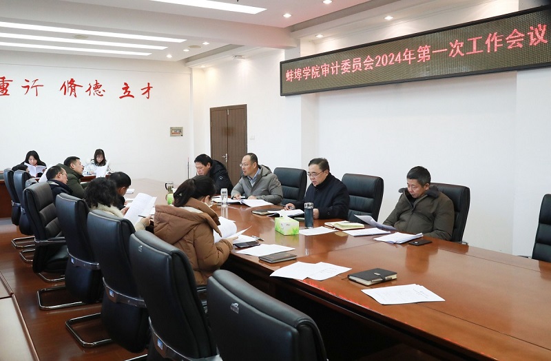 2024年1月23日下午,蚌埠学院审计委员会会议在行政楼第二会议室召开,会议由学校党委副书记、院长,审计委员会主任孙艳辉主持并讲话,审计委员会副主任、审计委员会各成员单位负责人参加会议。