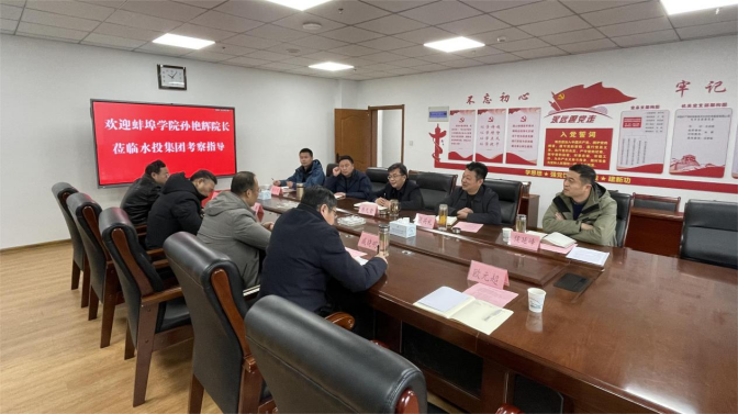 为推进毕业生就业,加速校企合作,1月30日,蚌埠学院党委副书记、院长孙艳辉带队赴蚌埠靓淮河水利投资集团开展访企拓岗活动。蚌埠靓淮河水利投资集团党总支书记董事长冉凡荣、总经理张兴礼、党总支副书记副总经理邵引红、副总经理侯延峰和部长彭介军等参加交流。