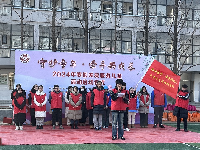 启动仪式现场,乌兰其其格宣布蚌埠市“守护童年·牵手共成长”寒假关爱服务儿童活动正式启动,金梅为活动致辞。作为蚌埠市100名大学生志愿者代表,蚌埠学院电子与电气工程学院2021级电子信息工程专业徐浩鹏参加授旗,2023级电子信息工程专业赵生逸发言,他们共同宣誓,将以实际行动为留守儿童和困境儿童送去关爱和温暖,让他们度过一个快乐、充实、有意义的假期,给他们带来快乐和希望,努力用爱心和汗水,助力他们书写美好未来。