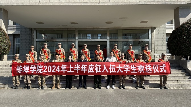 近年来,学校党委高度重视大学生征兵工作,亲自部署、督促落实,多次召开征兵工作推进会议,出台《蚌埠学院征兵工作实施办法》,从课程修读、毕业创业、考研升学到经济奖励等多个方面,为应征入伍的学生制定了实实在在的激励政策。今年春季征兵工作启动以来,全校共有236名学生报名应征,经过体检、政审,共有40余名毕业生奔赴军营。(撰稿人:李振浩;编辑:毛星懿;审核:赵思莉)