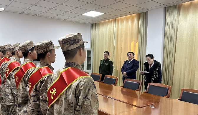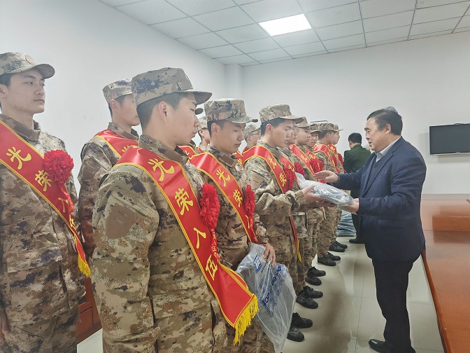 韦文联代表学校党委和全体师生员工向从学校光荣入伍的17名同学表示热烈祝贺,向支持学校征兵工作的新兵家长们表示崇高的敬意,向蚌山区武装部对我校征兵工作的大力支持表示衷心感谢。会议强调,青年大学生参军入伍是时代赋予的责任和义务,也是崇高荣誉和人生机遇,17名学子光荣入伍,既是学校的光荣,也是同学们的骄傲。奋楫扬帆正当时,乘风破浪勇担当,希望同学们珍惜身穿戎装的机会,自觉扛起维护国家安全的责任担当,把学校所学知识带到部队,展现新时代蚌院学子的精神风貌,让青春之花绽放在祖国最需要的地方。
