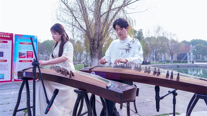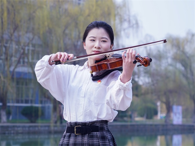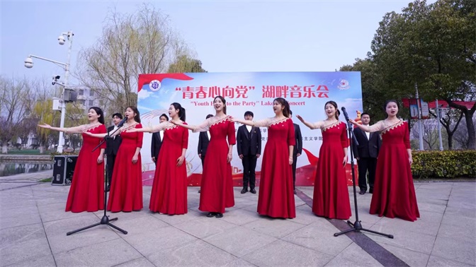 3月16日上午,晨光和煦,蚌埠学院校园内传来阵阵乐声,时而是“五星红旗迎风飘扬”的高昂合唱,时而是小提琴独奏《灯火里的中国》的婉转诉说,蚌埠学院“青春心向党”湖畔音乐会正在景观湖旁举行。