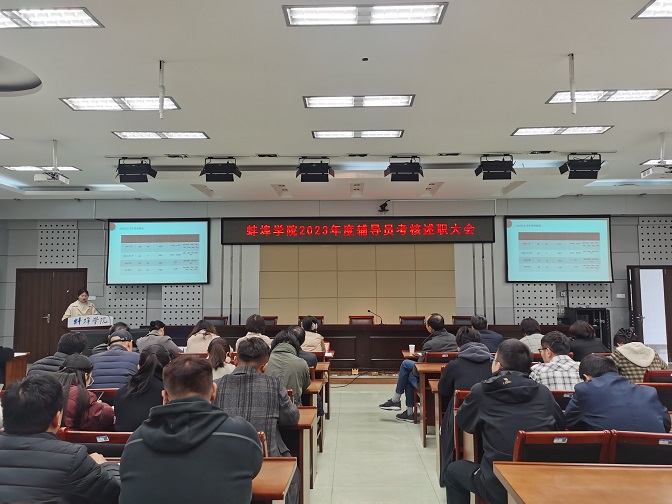 各学院前期按照《关于开展2023年度辅导员考核工作的通知》以及《蚌埠学院2023年度辅导员考核细则》等相关文件精神,负责组织评议小组根据考核内容和学生测评情况对一线专职辅导员进行评议,并拟推荐辅导员参与学校评议。在现场考核过程中,辅导员依次上台进行述职,通过生动的案例展示了辅导员在学生思想教育、日常管理、心理辅导等方面的创新实践;着重汇报了在学生活动组织、校园文化建设、就业指导等方面的突出成绩,充分展现了我校辅导员队伍的专业素养和精神风貌。述职过程中,评委根据考核标准对辅导员进行了打分考核,确保考核结果的客观性和公正性。