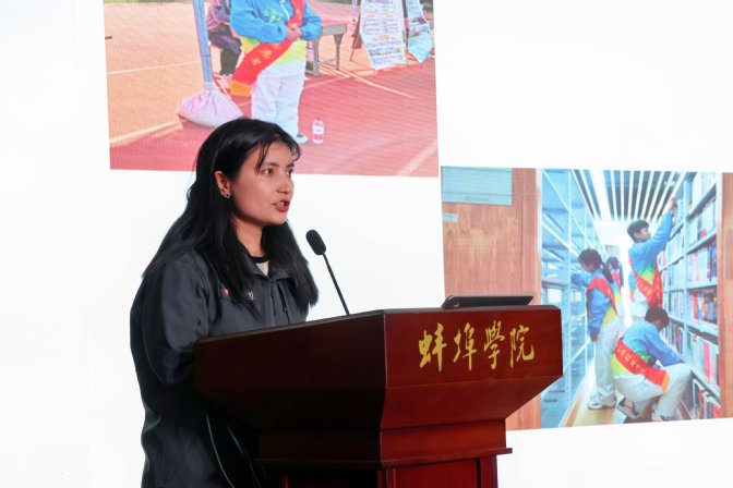 随后,志愿者代表盛宇龙、李璇、买哈巴·阿巴尔、王陈成、黄婉冬先后以《以青春之名赴志愿之约》《青春如火初心如炬》《让青春之花绽放在祖国最需要的地方》等报告为主题,围绕志愿服务工作、个人事迹、生活经历,向大家分享奉献基层的体验与感悟。