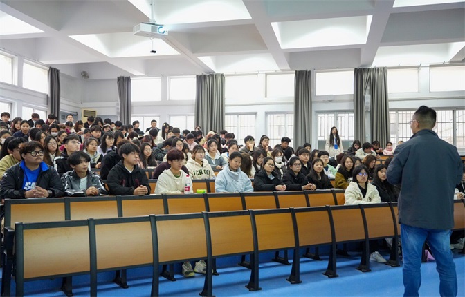 主讲人武剑结合多年工作经验,从活动拍摄的主题流程、活动拍摄技巧、不同场景的拍摄实操、剪辑操作入门几个方面出发,以详实的例证向学生讲解每个方面的拍摄技巧和注意事项。现场,武剑介绍了许多作品背后的故事,多次强调要学会调动现场、抓拍瞬间。“在媒体融合过程中,移动媒介成为主阵地”,武剑表示,“在移动媒介时代下,内容传播速度很快,因而,我们更要严谨得对待作品内容。”