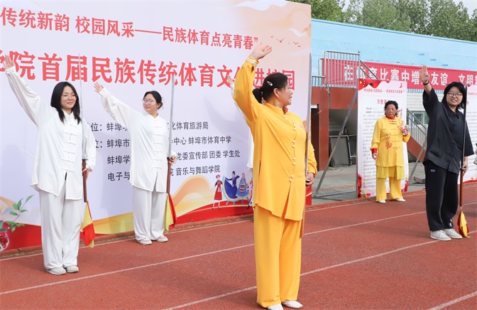 近年来,蚌埠学院始终履行起高校文化传承的职责,主动融入地方,开设各类具有地方特色的民族传统体育、艺术类课程和社团,包括五禽戏、太极拳、八段锦、花鼓灯、毽球等等,不仅丰富了课程内容,也在培育人才的同时,传承了中华民族的优秀传统文化。