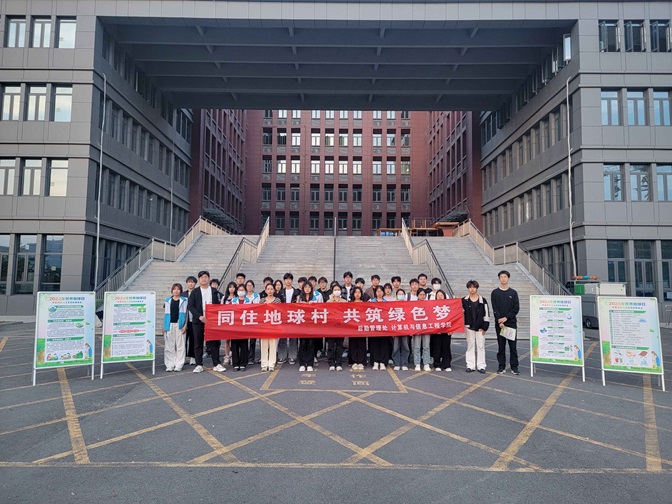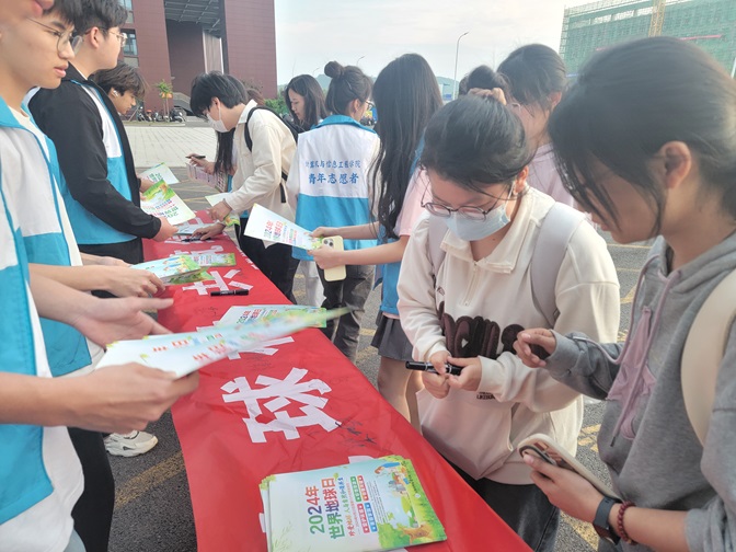 活动现场,后勤管理处和计算机与信息工程学院师生共同布置了宣传展板,展示了地球日的由来、意义以及绿色低碳校园建设的重要性。