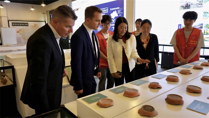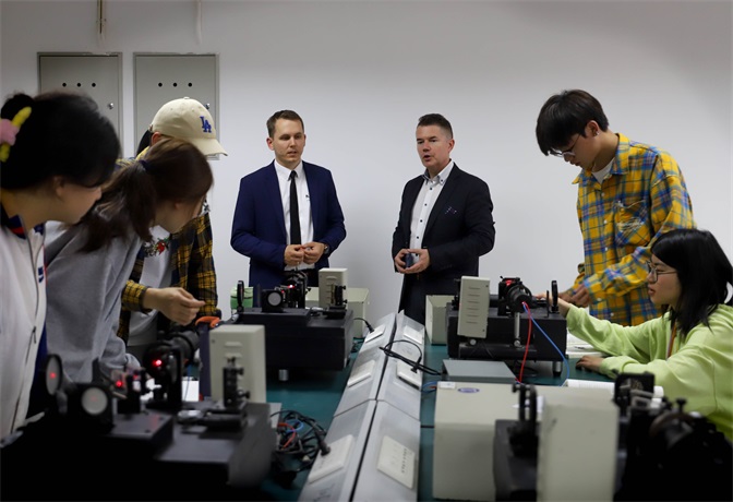 来访团首先观摩了我校21翻译2班的匈牙利语课的课堂教学,并与学生们展开了愉快的互动;参加了丰原集团在我校举行的专场招聘会,向参加招聘的学生详细介绍了匈牙利的位置和就业优势。随后,访问团参观了我校淮河文化馆、汽车工程实验实训中心、机器视觉实验室、美术馆等地,对我校良好的办学环境和丰富的教学成就表示赞赏。