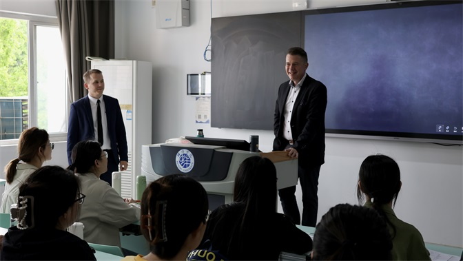 4月23日,匈牙利约翰·冯·诺依曼大学经济与商业学院院长卡帕缇·约瑟夫博士和汽车技术研究团队负责人昆·克利斯提安博士来我校访问。