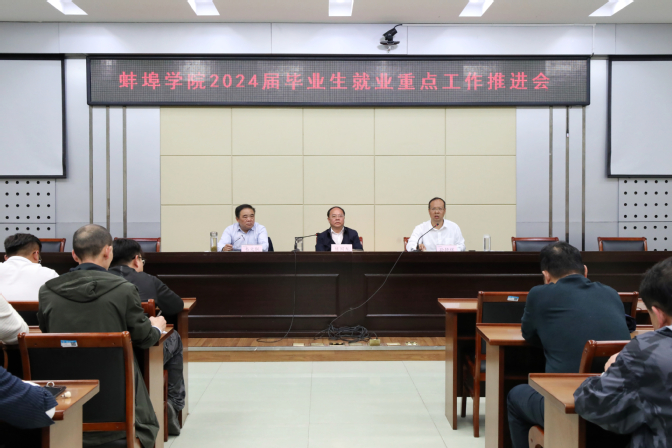 4月24日下午,学校于行政楼视频会议室召开2024届毕业生就业重点工作推进会,党委书记陈国龙、党委副书记韦文联出席会议并讲话。学校相关职能部门主要负责同志,各二级学院党政主要负责同志、分管负责同志及全体辅导员参会。党委副书记、院长孙艳辉主持会议。