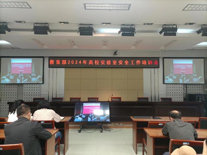 为贯彻教育部高等学校实验室安全工作会议精神,落实《教育部科学技术与信息化司、高等教育司关于组织召开2024年度高校实验室安全工作培训会的通知》要求,进一步提升我校实验室安全管理水平,4月26日下午,教务处、科研处、保卫处等部门相关负责同志,各二级学院分管实验室安全副院长、实验实训中心主任和实验室管理人员等参加了本次培训。