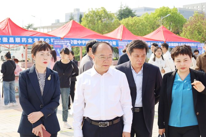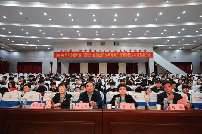 4月29日下午,颍州区委常委、组织部部长贺瑾带队来校开展招才引智高校行活动。学校党委书记陈国龙深入招聘现场指导工作,党委副书记韦文联出席推介会并致辞。颍州区相关负责同志,学校党委学生工作部主要负责同志、各学院分管负责同志,24家招聘企业,阜阳籍学生代表参加。