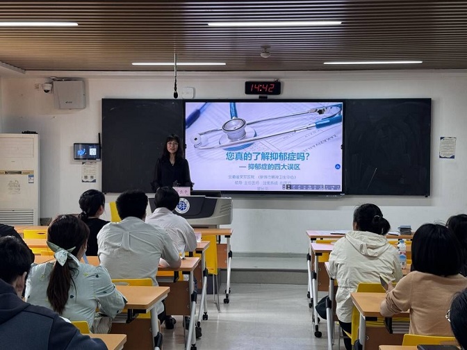 5月9日下午,学校举办了精神卫生科普校园行活动,特别邀请了安徽省荣军医院精神科主任医师翟长平和副主任医师赵婷婷在教学楼B309分别进行了《抑郁症的四大误区》和《大学生常见心理健康问题及应对策略》专题讲座,学校心理健康教育中心、各二级学院心理辅导站、以及全体辅导员参加了本次讲座。活动由学工部主办。