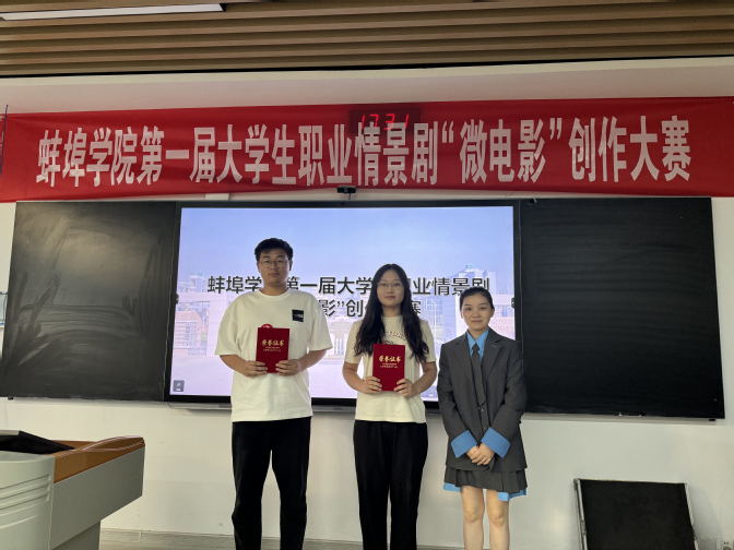 5月15日,蚌埠学院第一届“影动青春,职引未来”大学生职业情景微电影创作大赛决赛在教学楼B109顺利举行。本次活动由党委学生工作部主办,就业指导中心承办,旨在切实提高大学生的职业规划意识和职业素养,引导大学生树立正确的就业观、择业观,不断提高就业竞争力。