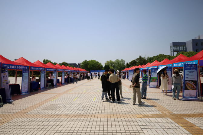 黄山市重点企业校园组团招聘会在学校图书馆西侧广场同期举行,主要面向机械、电气、财管等专业,部分岗位专业需求不限。招聘会现场气氛良好,毕业生穿梭在展位前,认真聆听用人单位介绍,主动向用人单位推荐自己。用人单位对毕业生的积极态度与专业能力表示肯定,表示希望能与学校长期保持合作。(撰稿:就业服务小组张金贝;编辑:毛星懿;审核:赵思莉、黄灿)
