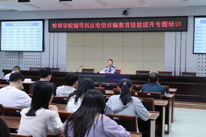 为进一步做好校园安全教育工作,加大反诈宣传力度,切实提高在校学生安全防范意识,营造平安和谐的校园环境,共建无诈校园。5月17日,保卫处联合党委学工部邀请龙湖派出所所长黄坤坤、二级警长陈依依来校开展反电信诈骗教育技能提升专题培训。全校辅导员参加培训。