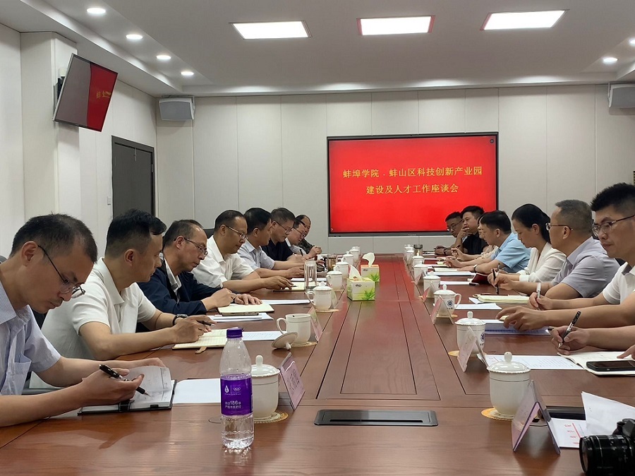 5月22日下午,蚌山区委书记桑延慧率队来我校就科技创新产业园建设及人才工作展开调研,蚌山区委常委、统战部部长、副区长吴淮庆等有关部门领导参加调研。校党委副书记、院长孙艳辉,党委委员、副院长郭有强及相关职能部门负责人出席座谈会。