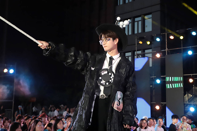 本届比赛以“绿色,低碳,循环”为主题,要求学生从可持续材料的选择与可再生原材料的创新以及废旧面料的二次改造与创新利用等方面,探索环保设计应用的新道路。开赛以来,收到参赛作品100余件,经过激烈角逐,最终有33件作品脱颖而出,成为本次大赛决赛的入选作品。决赛走秀晚会上,33件作品按设计主题分组展示,模特以优雅的步伐和自信的姿态展示出作品的独特魅力。每一件作品都仿佛在诉说着一个环保故事,让人们在欣赏美的同时也传达了绿色、低碳、可持续发展理念,赢得到评委老师以及现场观众的阵阵掌声。