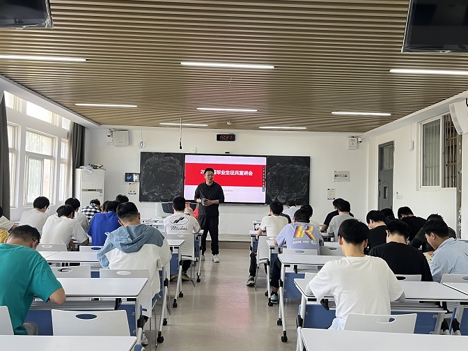 精心组织征兵主题班会。学校组织开展“筑梦军旅,无悔青春”征兵主题班会活动,覆盖全体学生,充分利用各学院文化资源,开展富有学院特色的国防宣传教育活动,活动采取观看征兵宣传片和宣讲征兵政策的方式,分别从应征入伍条件、入伍流程、大学生参军优惠政策等方面向学生介绍相关政策,加强了毕业生对征兵入伍的认识,激发学生携笔从戎、投身国防的热情,鼓励学生把爱国之心化为报国之行。
