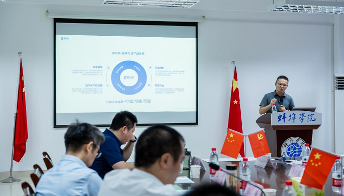 6月21日下午,蚌埠学院与安徽省计算机学会联合举办以“铸芯塑魂教育赋能”为主题的人才兴皖信创行——计算机学会走进高校暨信创助力高校教学研讨会。本次会议由安徽省计算机学会信创技术专委会和蚌埠学院计算机与信息工程学院承办,来自安徽省计算机学会、蚌埠学院、安徽财经大学、蚌埠医学院、安徽科技学院、安徽水利水电职业技术学院、安徽电子信息职业技术学院等学校的专家学者以及信创行业相关企业代表共50余人参加会议。