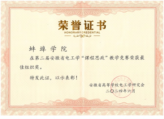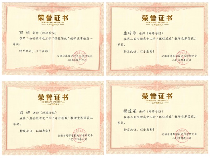 在竞赛激烈的角逐中,青年教师田娟凭借其扎实的专业素养、独特的教学设计和出色的教学实践,充分展现了“课程思政”的教学理念和创新思维,斩获省级一等奖,彰显了青年教师的教学实力和潜力。孟玲玲、樊琼星、刘娜三位青年教师也凭借出色的表现,均荣获了省级二等奖,进一步展现了电子与电气工程学院青年教师队伍的整体实力。蚌埠学院因此荣获“最佳组织奖”,这不仅是对参赛团队的肯定,也是对学院团队协作和组织能力的认可。