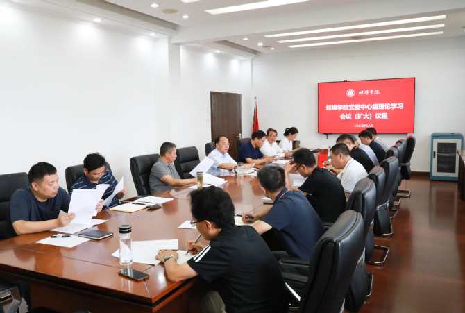 8月21日上午,蚌埠学院在行政楼第二会议室召开2024年度第十次党委中心组理论学习(扩大)会议,学校党委书记陈国龙主持会议并讲话,校党委理论学习中心组成员,各二级党组织书记参加会议。