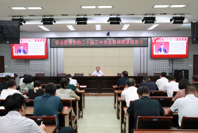 报告会上,陈国龙从“这次全会是在以中国式现代化全面推进强国建设、民族复兴伟业的关键时期召开的一次十分重要的会议”“深入学习领会习近平总书记在全会上的重要讲话精神”“全面准确理解《决定》提出的进一步全面深化改革重大举措”“全力以赴抓好全会精神贯彻落实”四个方面,对全会精神作了全面宣讲和深入阐释。