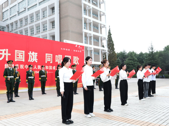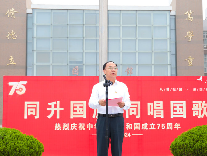 为庆祝中华人民共和国成立75周年,9月30日清晨,蚌埠学院隆重举行“同升国旗 同唱国歌”主题活动。党委书记陈国龙出席活动并为全体新生上开学第一课,党委副书记、院长孙艳辉,党委委员、副院长郭有强出席活动。各职能部门主要负责人,二级学院党委书记、党委副书记、团总支负责人,2024级辅导员,2024级全体新生以及少数民族学生代表、民主党派人士代表齐聚图书馆前广场,共同唱响礼赞新中国、奋进新时代的昂扬旋律。