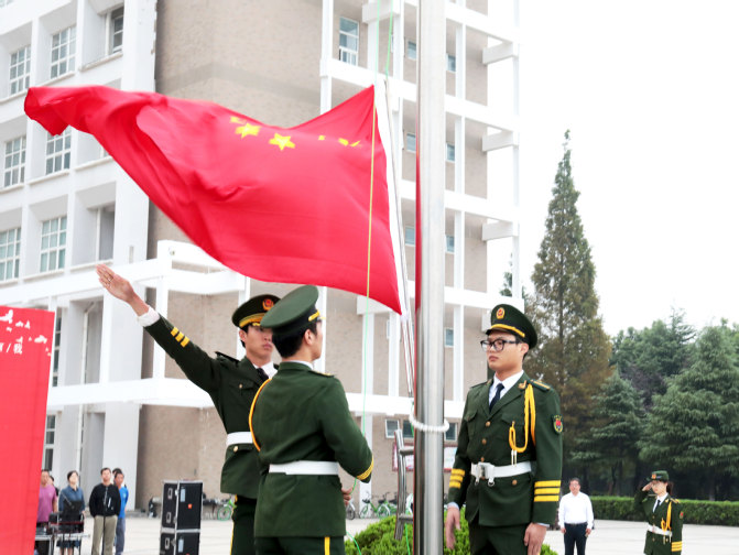 上午七点整,升旗仪式正式开始。国旗护卫队迈着整齐有力的步伐护送五星红旗入场。全体师生集体高唱国歌,行注目礼,为伟大的祖国送上最诚挚的祝福。