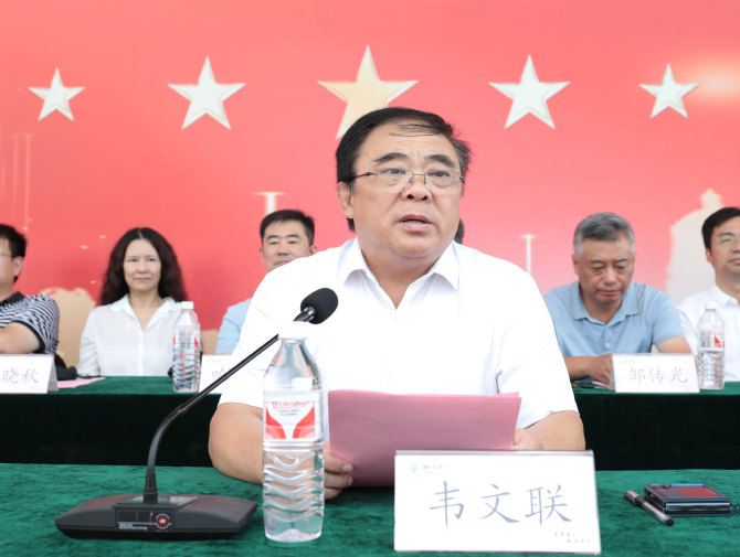 韦文联同志代表蚌埠学院向蚌山区武装部曾鸣部长赠送锦旗。