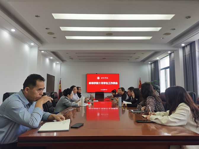 10月11日上午,我校在行政楼会议室召开学生工作例会,部署近期学生工作。会议由校党委副书记韦文联主持,相关职能部门负责人及各二级学院分管学生工作负责人参加会议。