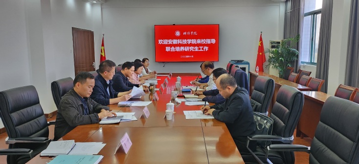 10月11日下午,安徽科技学院党委委员、副院长王孝义一行到我校调研指导研究生联合培养工作,校党委委员、副院长郭有强,科研处、机械与车辆工程学院、经济与管理学院等相关部门负责同志,相关研究生导师及联合培养研究生参加调研座谈会。