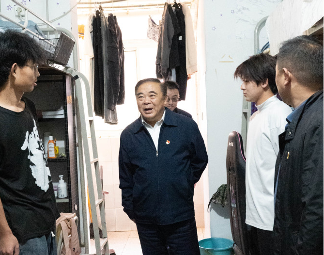 在“下基层现场办公”阶段,韦文联前往12楼的男生宿舍进行实地调研,与学生亲切交谈,了解他们的学习、生活、第二课堂活动开展情况,鼓励他们要认真学习宣传贯彻党的二十届三中全会精神,合理规划大学生活,学好专业知识,练就过硬本领,答好时代问卷,用实际行动勇担时代使命。