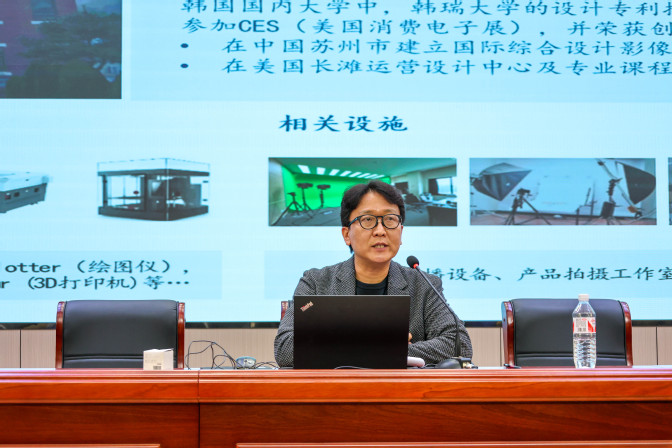研讨会上,韩瑞大学教授宋星日,安徽财经大学教师黄宸瀚,蚌埠学院教师李牧醒分别从不同视角展示了各自在产品设计领域的创新成果。与会中韩师生就产品设计的理念、行业服务等问题进行了深入交流。