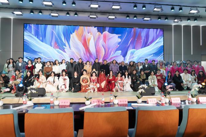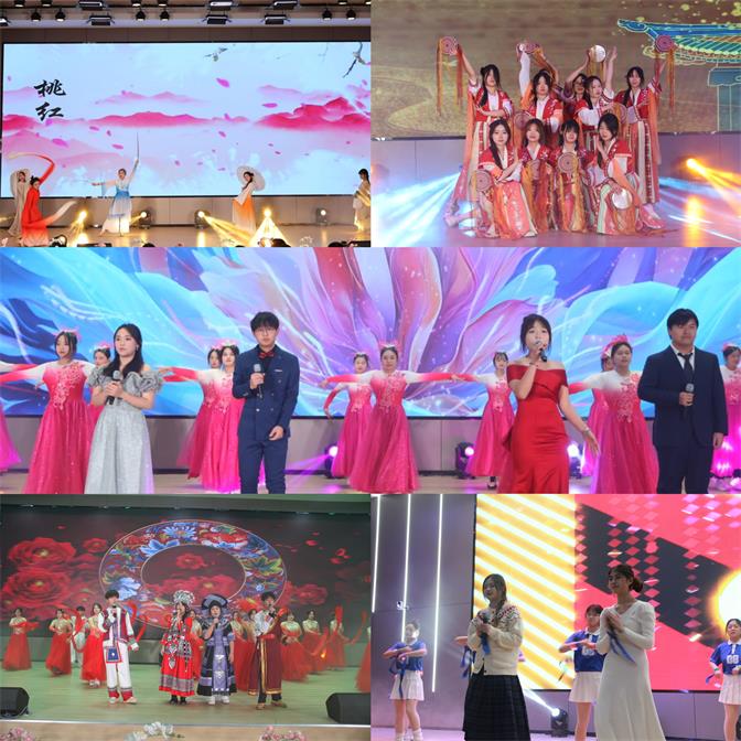 戏曲《梨园花千树》唱腔设计精妙绝伦,既有传统戏曲的韵味,又展现了梨花千树,满园芬芳迎客来的生动场景。舞台剧《新春灯会》营造出了浓厚的节日氛围,表达了人们通过挂灯、赏灯来祈求新的一年里生活光明、事业顺利的美好愿景。最后,晚会在歌舞《梦在春天如愿》中落下帷幕。校领导走上舞台,同演职人员亲切握手,祝贺晚会取得圆满成功,并与大家合影留念。
