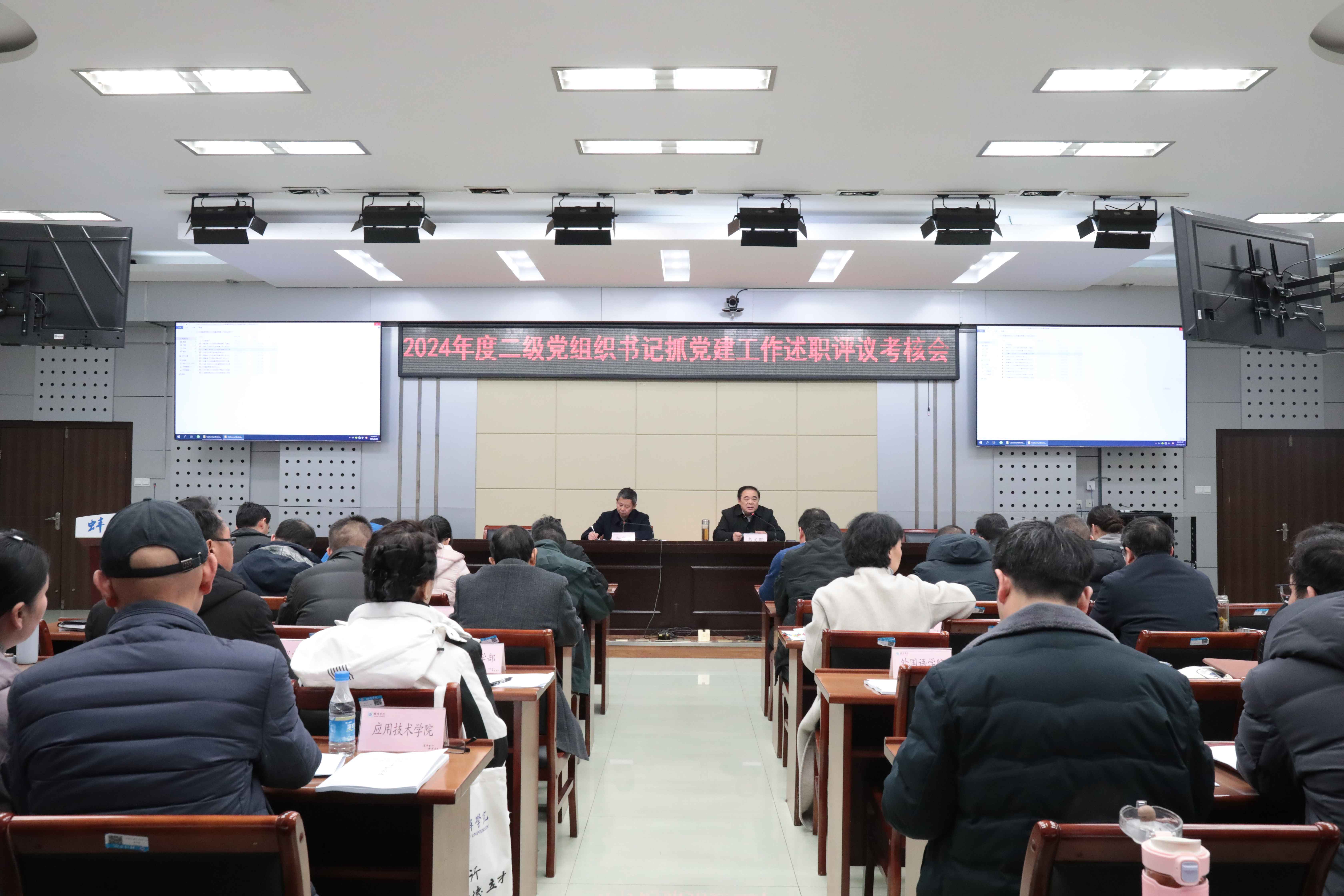 2025年2月20日下午,学校党委召开2024年度二级党组织书记抓党建工作述职评议考核会,进一步落实党建工作责任制,促进党建业务深度融合。党委班子成员、各教学院部党政负责人、相关职能部门负责人、支部书记及师生代表参加会议。党委副书记韦文联主持会议。