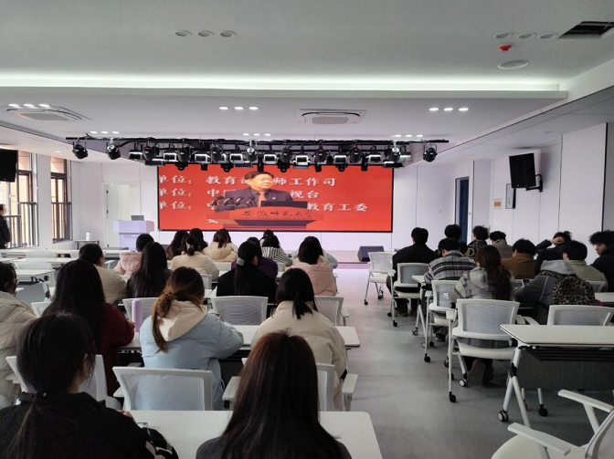 为引导广大师范生坚定理想信念,厚植教育情怀,2月27日下午,我校组织全体师范生在“一站式”学生社区众创空间观看了教育家精神2025年巡回宣讲团直播活动。