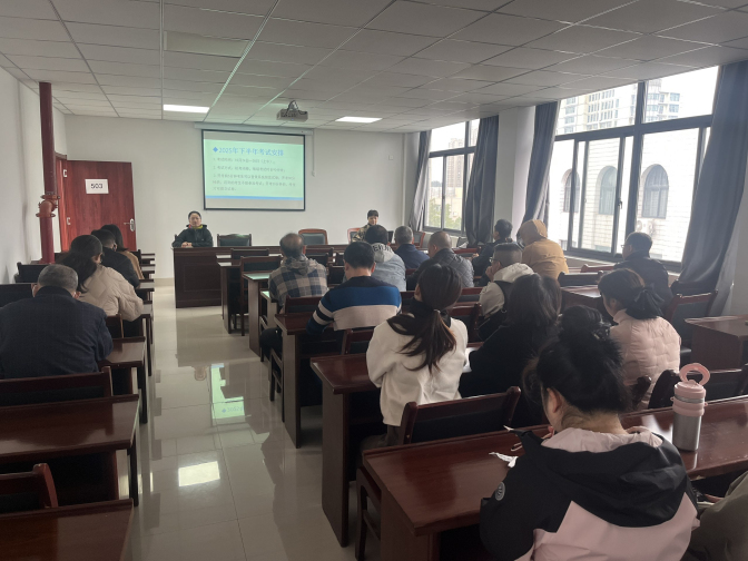 培训会上,考务工作组围绕考试组织全流程,从考前准备、考生入场、考试过程管理等环节,逐一明确岗位职责、操作规范及协作要点,并结合以往考试中易发、多发问题进行了重点提示与复盘,确保每位工作人员职责清晰、流程熟练、处置得当,实现从“知流程”到“精业务”的提升。