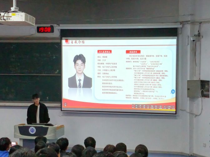 为引导学生科学规划学业发展、有效规避选课与考研过程中的常见误区,10月17日晚七点,电子与电气工程学院于阶梯教室3举办“涵养优良学风,规划奋进青春”专题分享会。活动邀请三位在学业规划、科研竞赛及考研准备方面表现突出的2022级学生进行经验交流,为低年级同学指明方向、提供借鉴。
