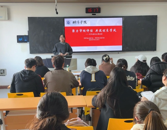 班会上,辅导员针对班级学风等突出问题,强调班委责任和担当,要求以身作则、严守纪律,发挥表率引领班级进步。同时,着重号召班委与党员、入党积极分子等学生骨干发挥先锋模范作用,以自身为范带动班级营造良好学风。同时传达了学院关于教学审核评估的工作要求。针对教学审核评估的核心指标,详细解读了本科教育教学审核评估应知应会基础知识,引导同学们明确自身定位,积极配合学院完成各项评估准备工作。同学们纷纷表示,本科教育教学审核评估是对学校育人成效的一次全面检验,事关学校长远发展与每位学生的成长成才,我们将自觉服从学校学院安排,从平时做起、从细节做起,以饱满的热情、昂扬的斗志、严谨的作风,规范自身言行,勤奋学习,展现出新时代大学生的最佳风貌,争做合格评估的参与者、贡献者和受益者。