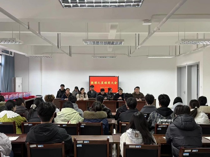 12月10日12:30分理工楼516会议室灯光璀璨、掌声如潮,数理学院2025年度“数理之星”颁奖典礼在此隆重举行。学院党委书记孙礼俊、副院长王莉、党政办主任、学工组长、团委书记、教学秘书、全体辅导员和教师代表出席,典礼由党委副书记李明主持。