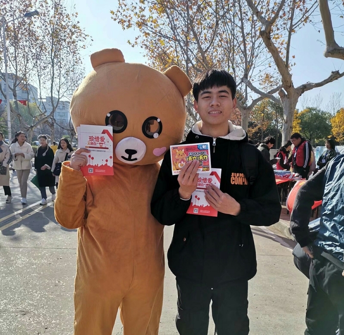 11月27日上午,蚌埠学院青年志愿者联合会及各十二院青协的工作人员来到学校主干道开始防艾知识摆台宣传。志愿者们向同学们发放宣传手册和红丝带,并为来往同学介绍有关艾滋病的知识,来往同学在条幅上签名并写上寄语和祝福,同时通过与红丝带合照留念及与穿有小熊玩偶的“艾滋病患者”拥抱合影表达心中美好的祝愿。此次活动还设置了答题环节,答对题目六题以上的同学将获得一次抽奖机会。