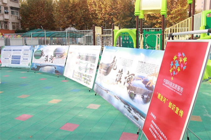 11月25日,在蚌埠市龙湖第二小学的操场上,蚌埠学院“靓淮河”科普宣讲团的成员正在向学生们讲解“靓淮河”工程,科普环保节水知识。“青山绿水是我家,淮河文化靓起来”,知识展牌前,学生们正大声地朗读展牌上的文字,认真地浏览图片,仔细地聆听宣讲团的讲解。