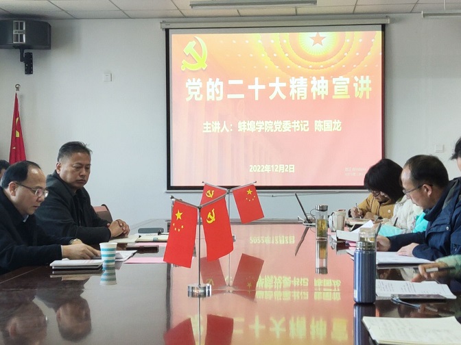 2022年12月2日上午,校党委书记陈国龙到马克思主义学院宣讲党的二十大精神,并开展调研,党委委员、宣传部长李荣陪同。