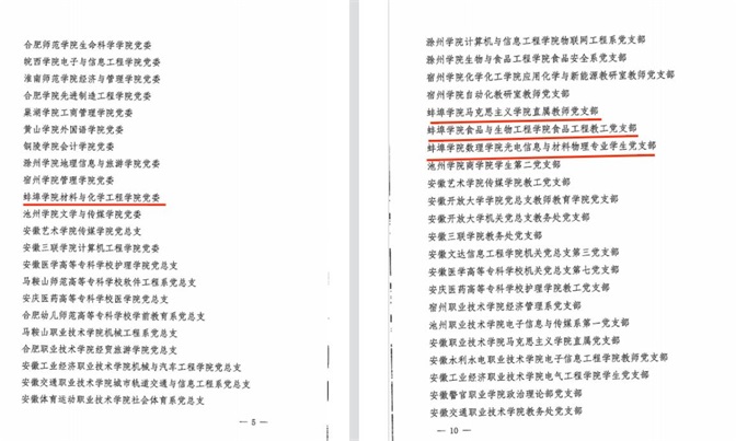 近日,中共安徽省委教育工委公布了首批新时代高校党建示范创建和质量创优工作建设单位验收通过名单。我校材料与化学工程学院党委顺利通过省级首批党建工作标杆院系验收,马克思主义学院直属教师党支部等3个党支部通过省级党建工作样板支部验收。