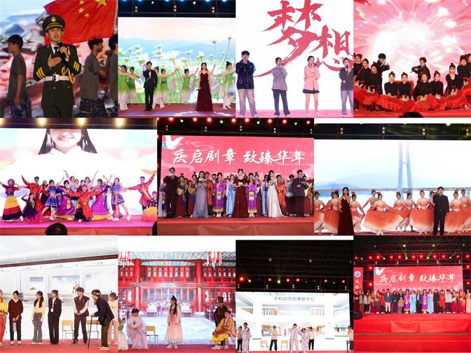 开场舞蹈《万紫千红》拉开了文艺晚会的序幕,乐起舞动,花伞旋转、舞乐交融,一派百花盛开,姹紫嫣红的生动景象。小品《遇人不淑》和《甄嬛传外传》通过轻松幽默的对白场景设计引得全场开怀大笑。《美丽的穿越》和《手机综合症》劝诫了部分青年人不要过分沉迷手机和过度减肥。《反诈银行》在实例中穿插幽默的台词,创意十足,让大家在轻松的氛围中了解电信诈骗的危害,加强了防范意识。歌曲《我们都是追梦人》、《无比庆幸身边有你一起》、《梦的旅途》以悦耳的声音表现出情感,使听众产生共鸣,在旋律中感受到了欢乐与青春活力。其中,歌舞《春风十万里》充分展现了美丽中国人与自然和谐共处的美好画面,军歌《有我在》展现了大学生勇担时代使命和保家卫国的坚定信念。韩舞《幻想童话》、民族舞《美丽中国》、武术舞蹈《鼓舞青春》振奋人心,将晚会的气氛推向高潮,赢得了全场观众一致好评。舞蹈《红船》完美展示了伟大的红船精神、舞蹈《妙音反弹》好似一幅活的敦煌壁画,让人领略到了中国传统文化之美。最后,晚会在歌舞《领航》中落下帷幕。
