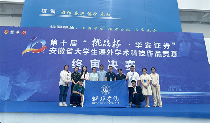 青春向党,奋斗强国;挑战筑梦,科创报国,近日,由共青团安徽省委员会、省教育厅、省科协、省社科院和省学联共同主办的第十届“挑战杯·华安证券”安徽省大学生课外学术科技竞赛终审决赛在安徽理工大学圆满落下帷幕,我校作品在本次大赛中斩获二等奖2项,三等奖10项。