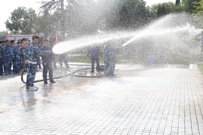 在图书馆前广场上,消防指战员按照《2023级新生消防、人防安全教育暨消防演练方案》,分组依次向同学们详细讲解各类消防救援装备的发展及使用方法,常用干粉灭火器的灭火原理、操作技巧及注意事项,消防水枪的使用及操作规范。通过现场亲身体验,同学们不仅实地学习了一系列消防知识和逃生知识,也掌握了部分消防器具正确使用方法,特别是灭火器的操作要领。
